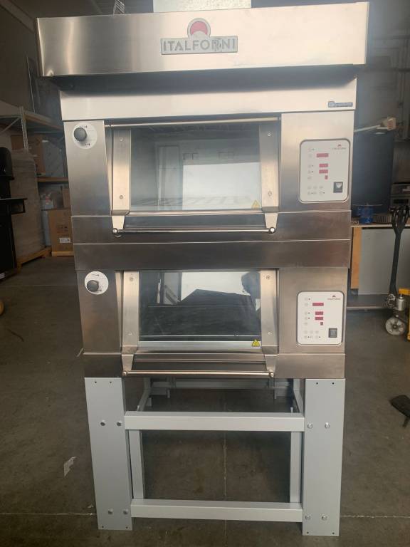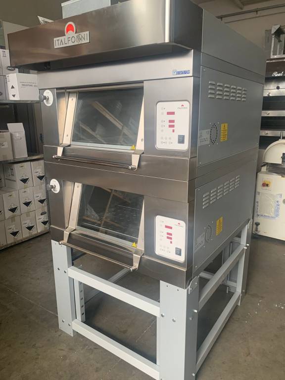 Forno elettrico modulare con camere di cottura in lamiera di acciaio alluminata cm.60x80x27H con vaporiere per ogni camera. USATO FIERA