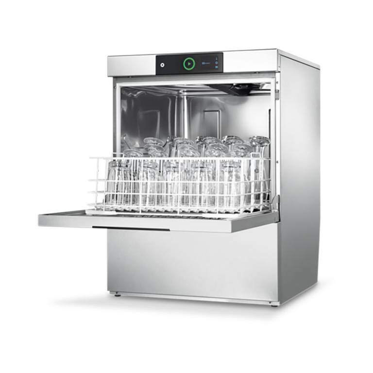 - Alta capacità di lavaggio: fino a 60 cestelli/ora (2.160 bicchieri), espandibili fino a 120 con sistema a doppio cestello